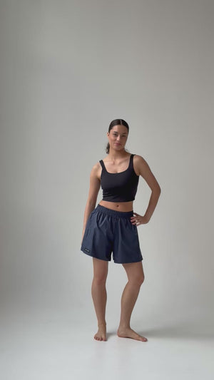 These shorts are made of carefully selected warm-up navy pulse color fabric. It doesn't restrict movement, gives a feeling of luxurious comfort and keeps you warm during workout. These durable sports shorts is perfect for ballet, pilates, yoga, gym training or casual wear. The hand-picked selection of materials, ergonomic design and tailor-made variety of activewear are curated by BOSADDO.