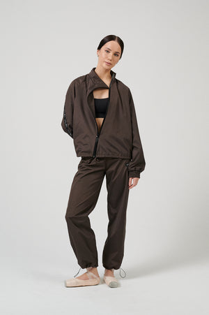 Enhanced with a black high-quality zipper, this unisex sports suit with pants is made of carefully selected warm-up new age brown color fabric. It doesn't restrict movement, gives a feeling of luxurious comfort and keeps you warm during workout. This durable sports set is perfect for ballet, pilates, yoga, gym training or casual wear. The hand-picked selection of materials, ergonomic design and tailor-made variety of activewear are curated by BOSADDO.