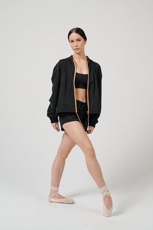 Enhanced with a cream high-quality zipper, this unisex sports suit with shorts is made of carefully selected heat-retaining black color fabric. It doesn't restrict movement, gives a feeling of luxurious comfort and keeps you warm during workout. This durable sports set is perfect for ballet, pilates, yoga, gym training or casual wear. The hand-picked selection of materials, ergonomic design and tailor-made variety of activewear are curated by BOSADDO.