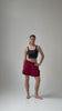 Šie šortai pasiūti iš kruopščiai atrinkto apšildančio bordo rush spalvos audinio. Juose yra reguliuojamos virvelės per visą ilgį, leidžiančios jums pritaikyti savo figūrą ir sukurti unikalų stilių. Jis nevaržo judesių, suteikia prabangaus komforto pojūtį ir sušildo treniruotės metu. Šie patvarūs sportiniai šortai puikiai tinka baletui, pilatesui, jogai, treniruotėms sporto salėje ar laisvalaikiui. Medžiagų pasirinkimą, ergonomišką dizainą ir specialiai pritaikytą aktyvių drabužių pasirinkimą kuria BOSADDO.