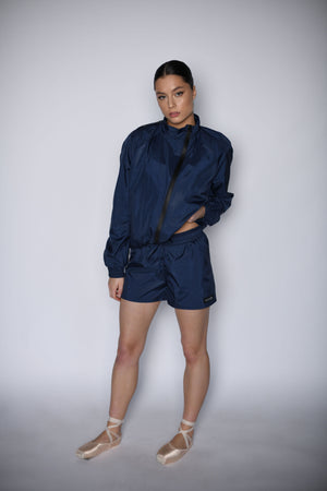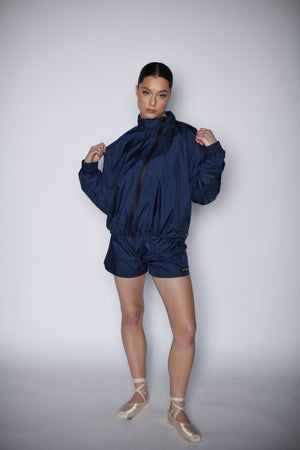 Patobulintas juodu kokybišku užtrauktuku, šis unisex sportinis kostiumas su šortais pasiūtas iš kruopščiai atrinkto šilumą išlaikančio karališkos mėlynos spalvos audinio. Jis nevaržo judesių, suteikia prabangaus komforto pojūtį ir sušildo treniruotės metu. Šis patvarus sportinis rinkinys puikiai tinka baletui, pilatesui, jogai, treniruotėms sporto salėje ar laisvalaikiui. Medžiagų pasirinkimą, ergonomišką dizainą ir specialiai pritaikytą aktyvių drabužių pasirinkimą kuria BOSADDO.